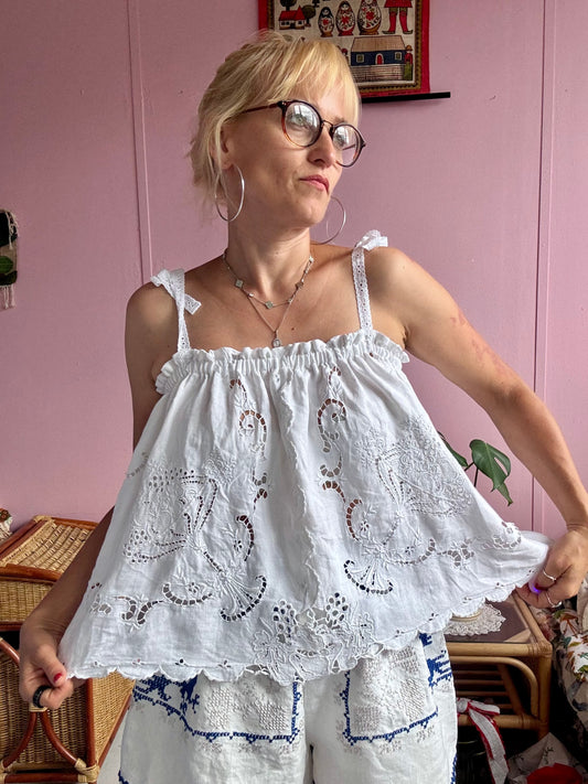 All white embroidery strappy top