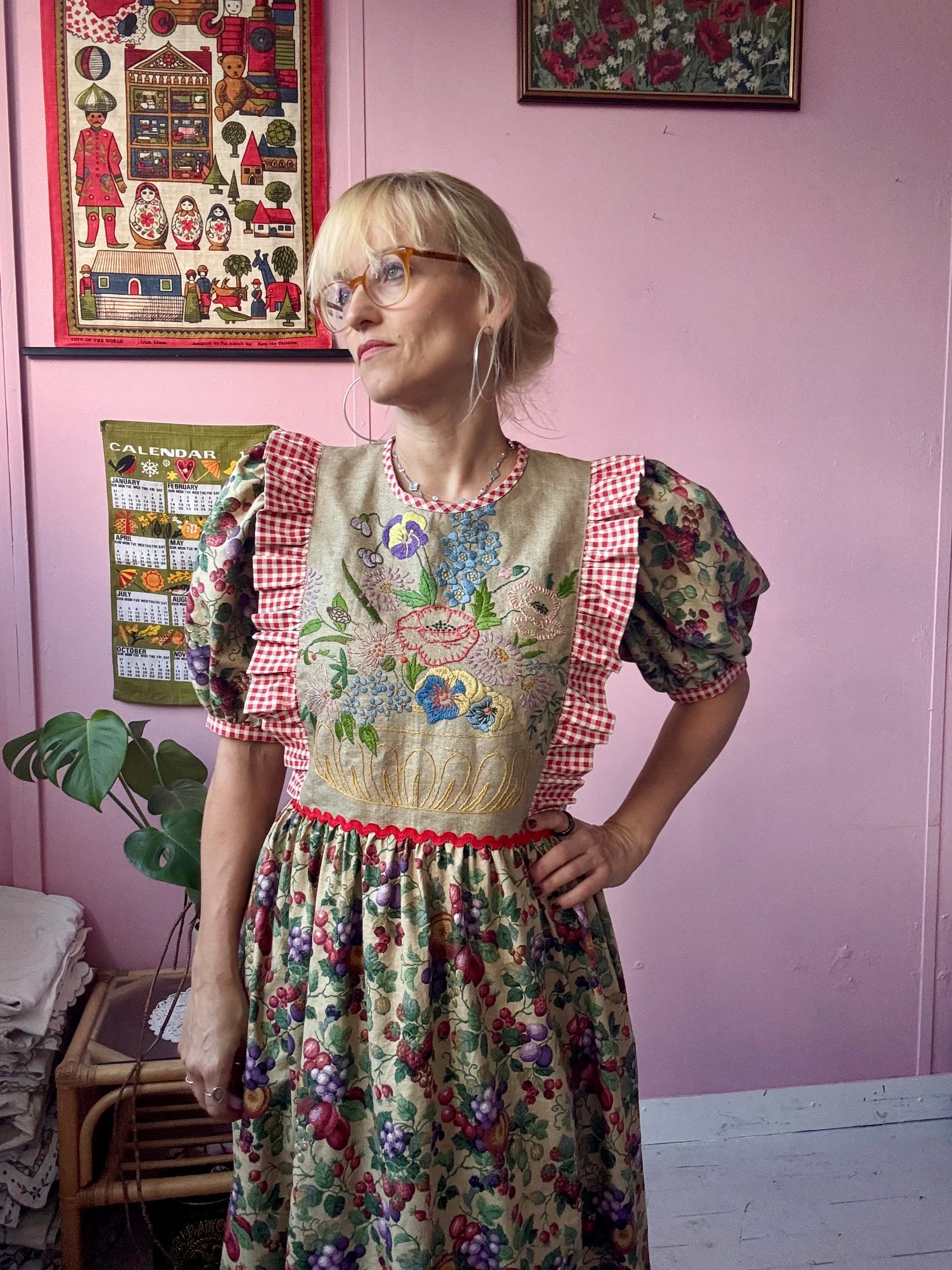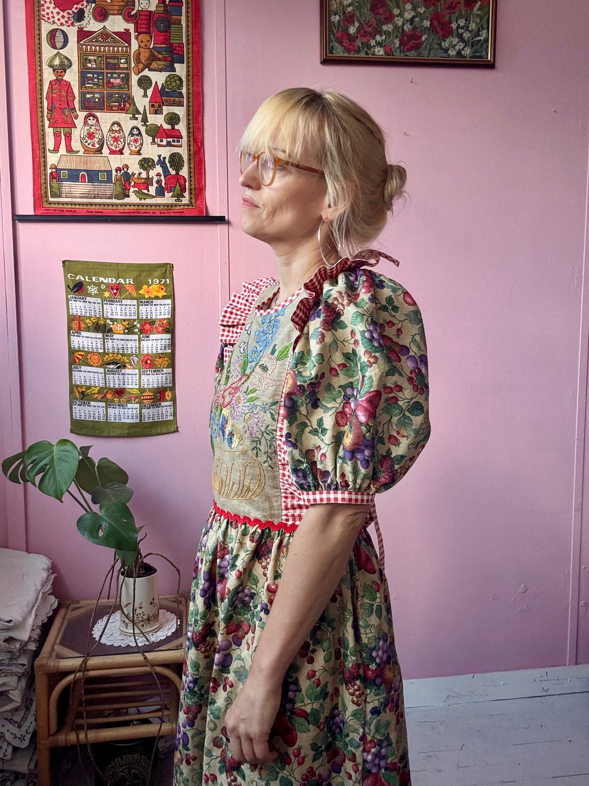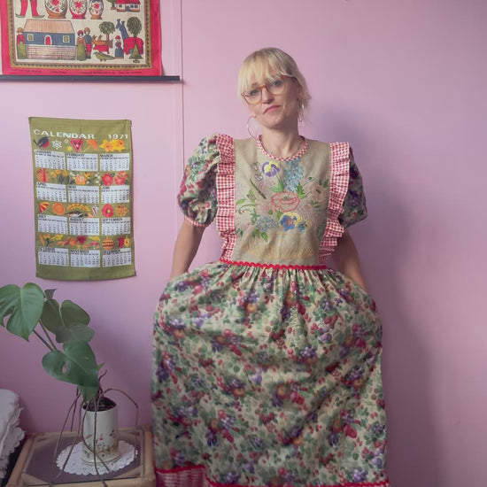 Fruity print maxi dress made from vintage curtains (plus gingham one)