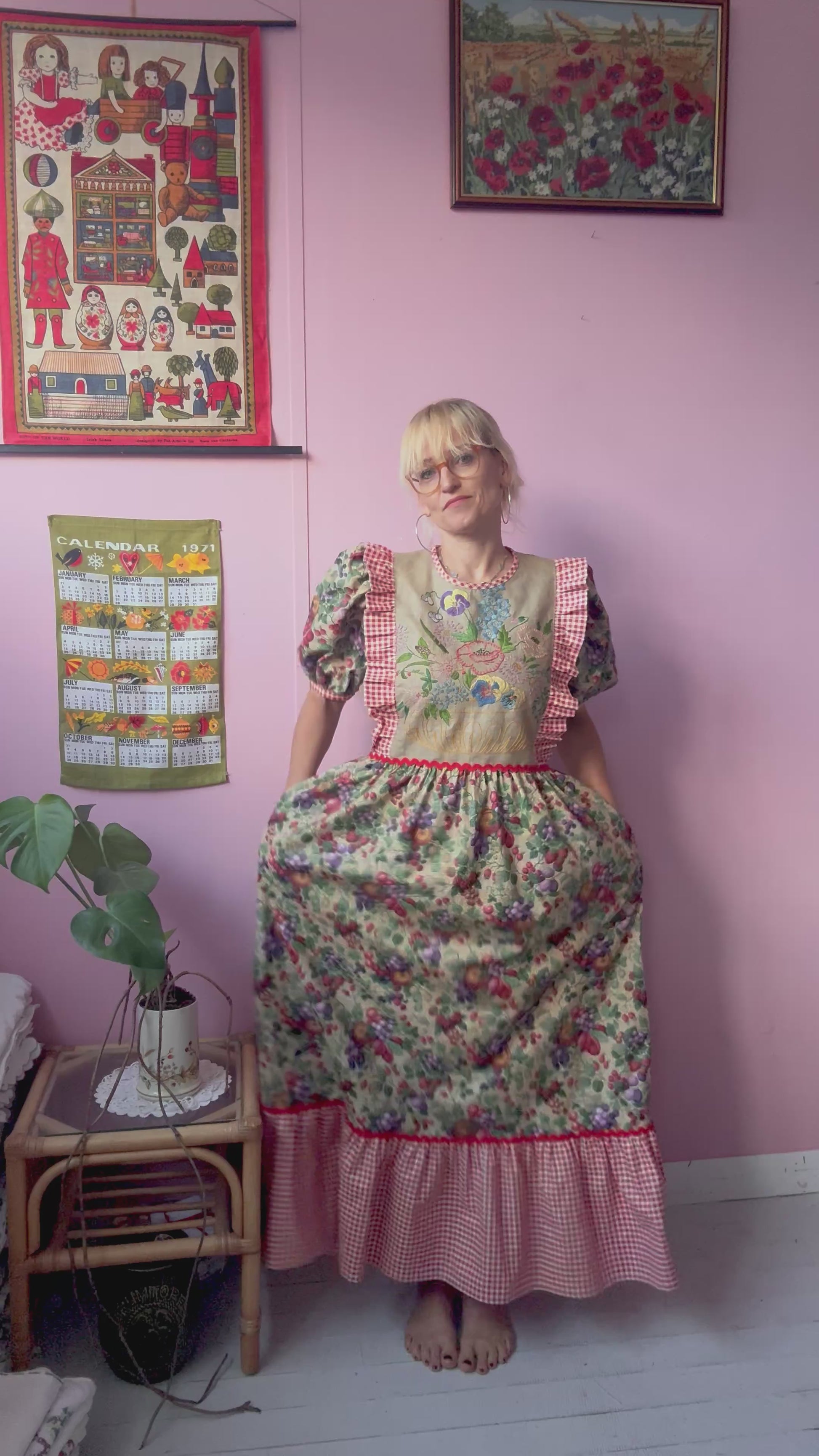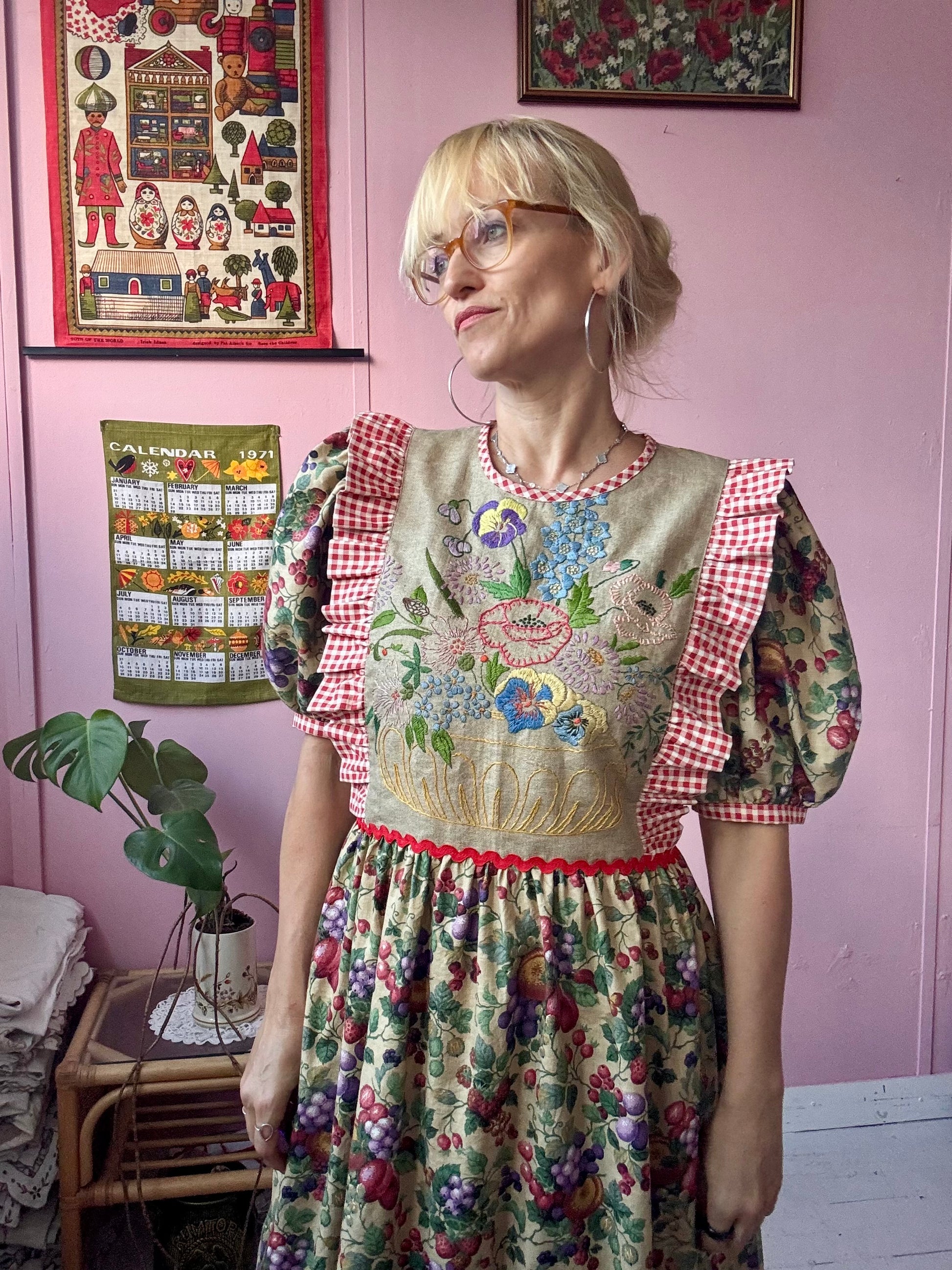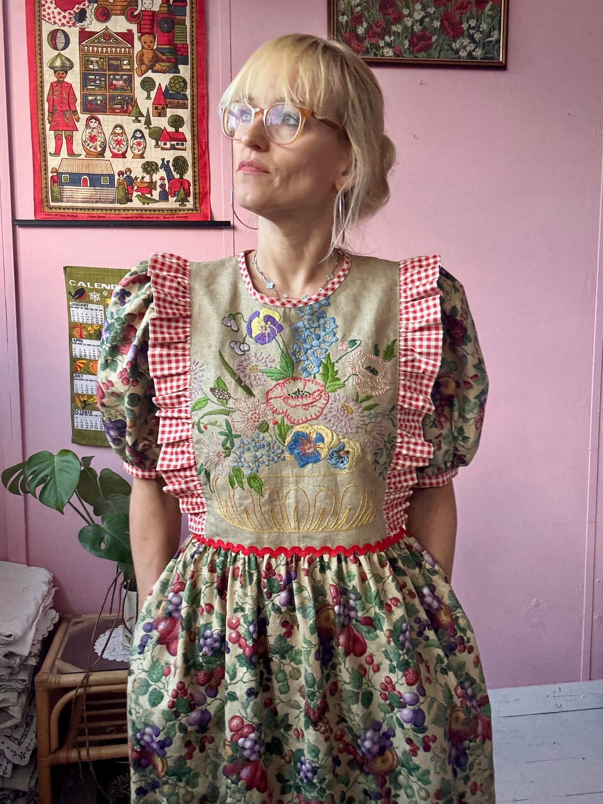 Fruity print maxi dress made from vintage curtains (plus gingham one)