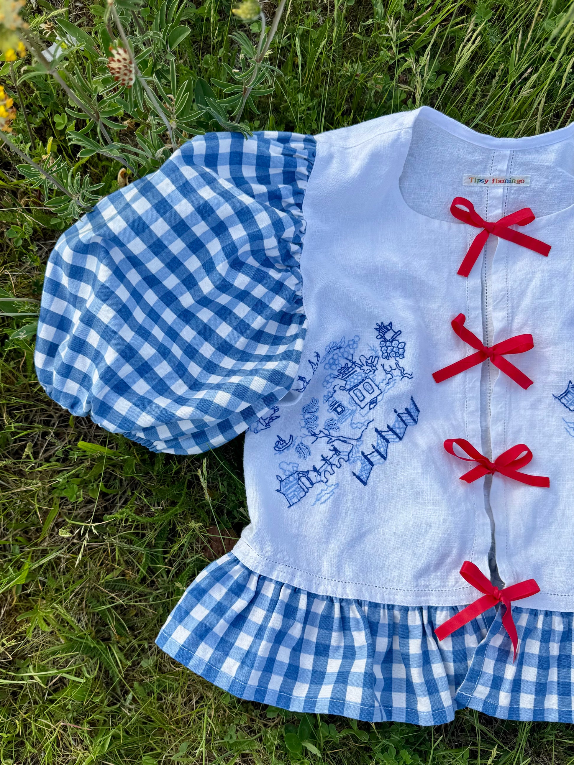 Blue embroidery and gingham blouse