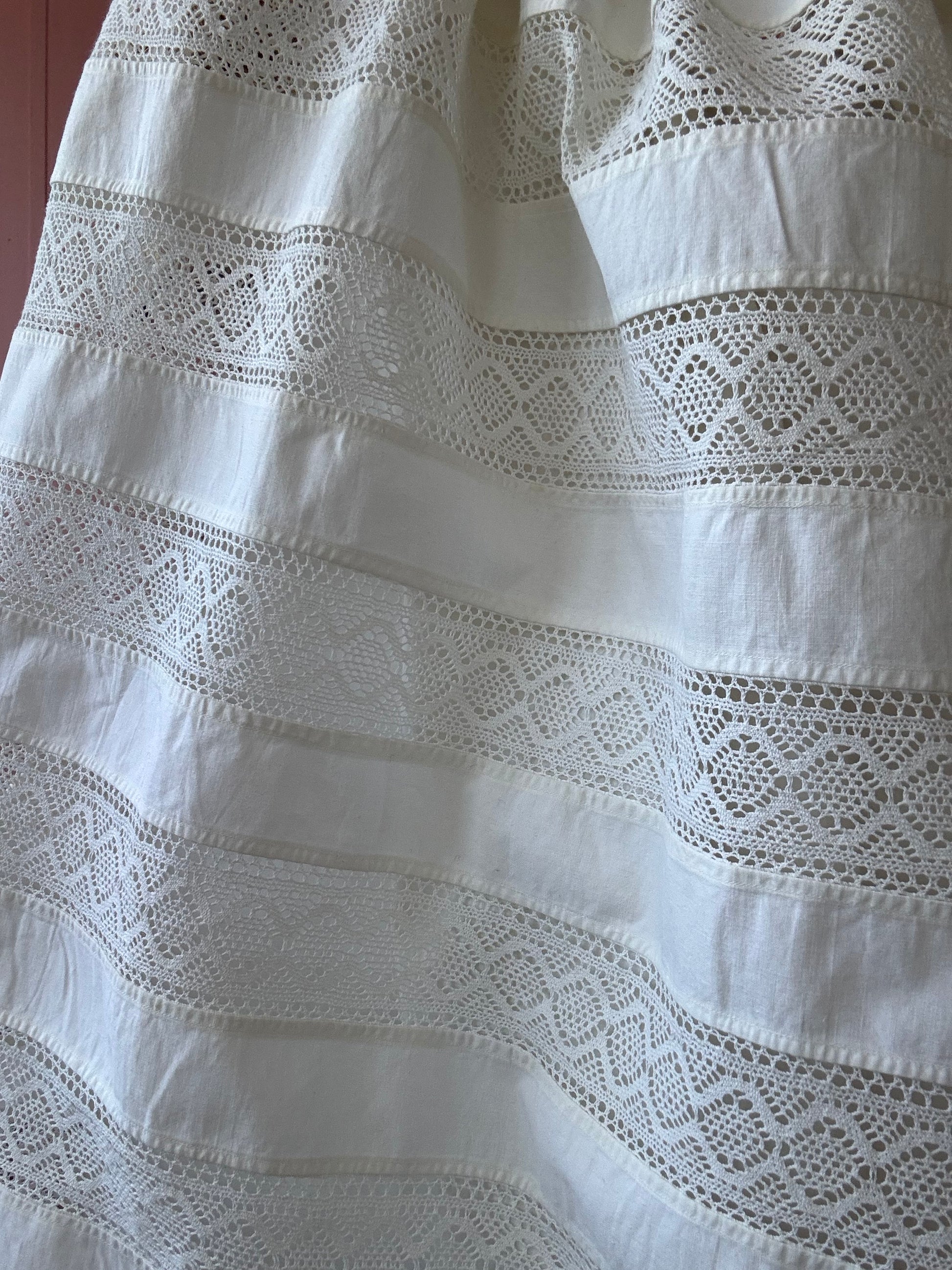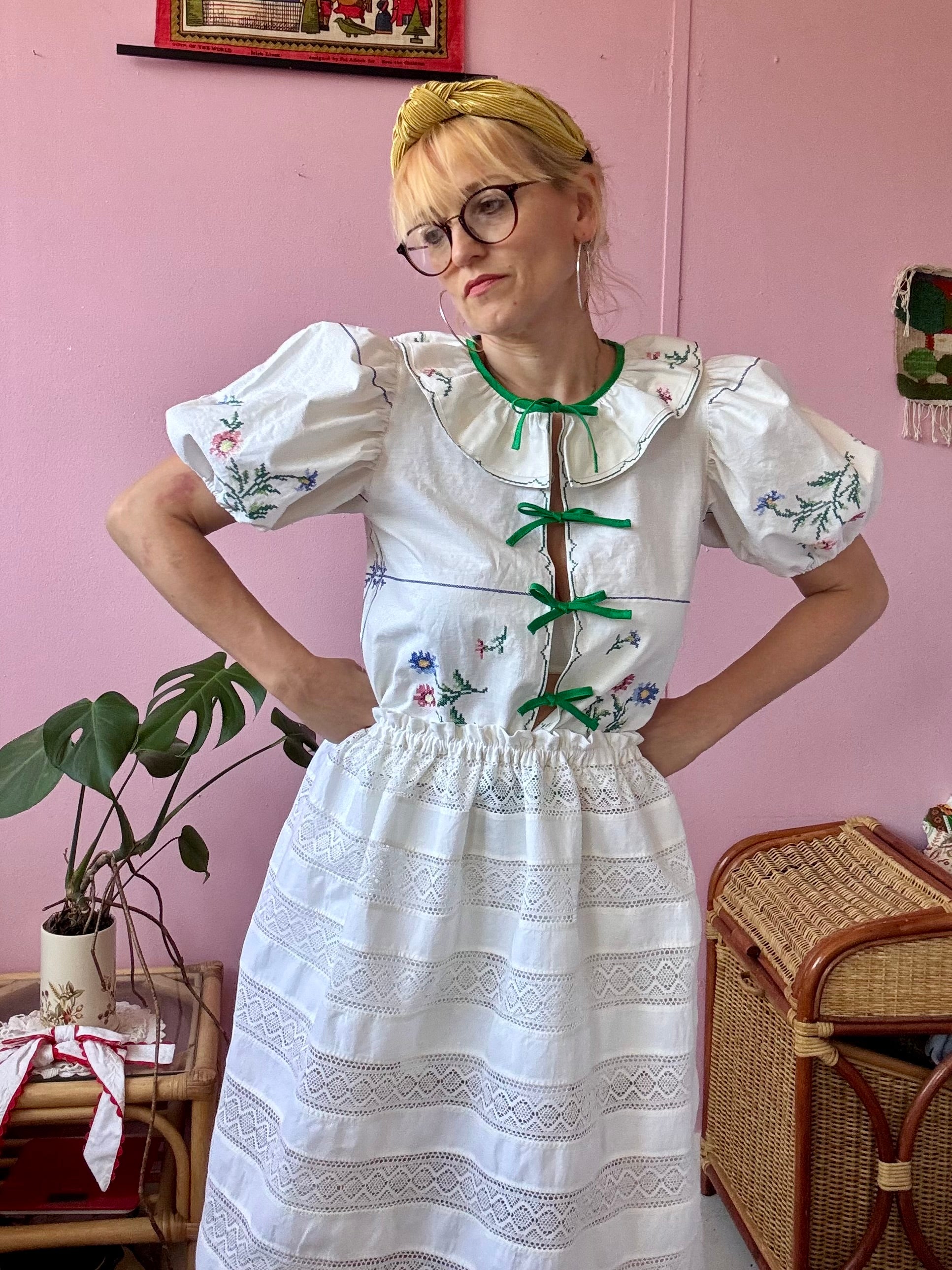 Cream cotton skirt/mini dress made from vintage pillow case
