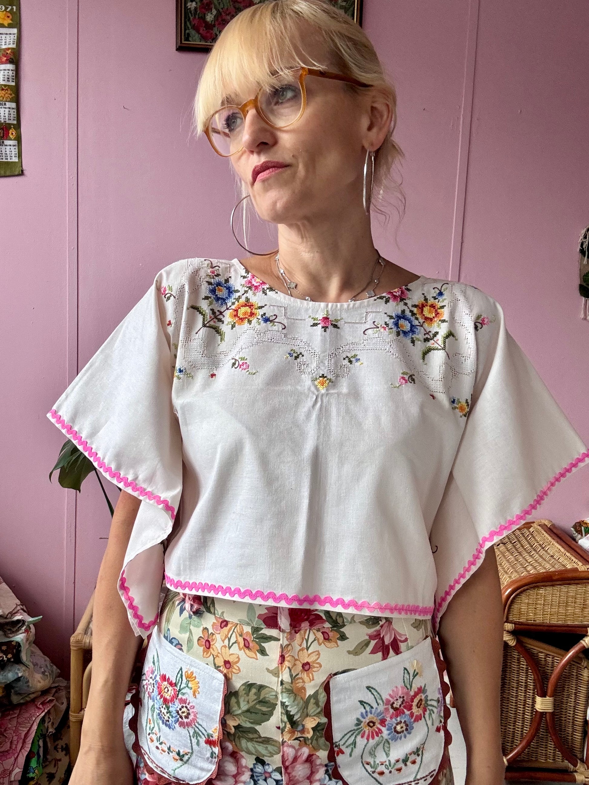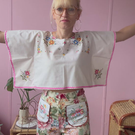 Cute little basic top made from vintage tablecloth