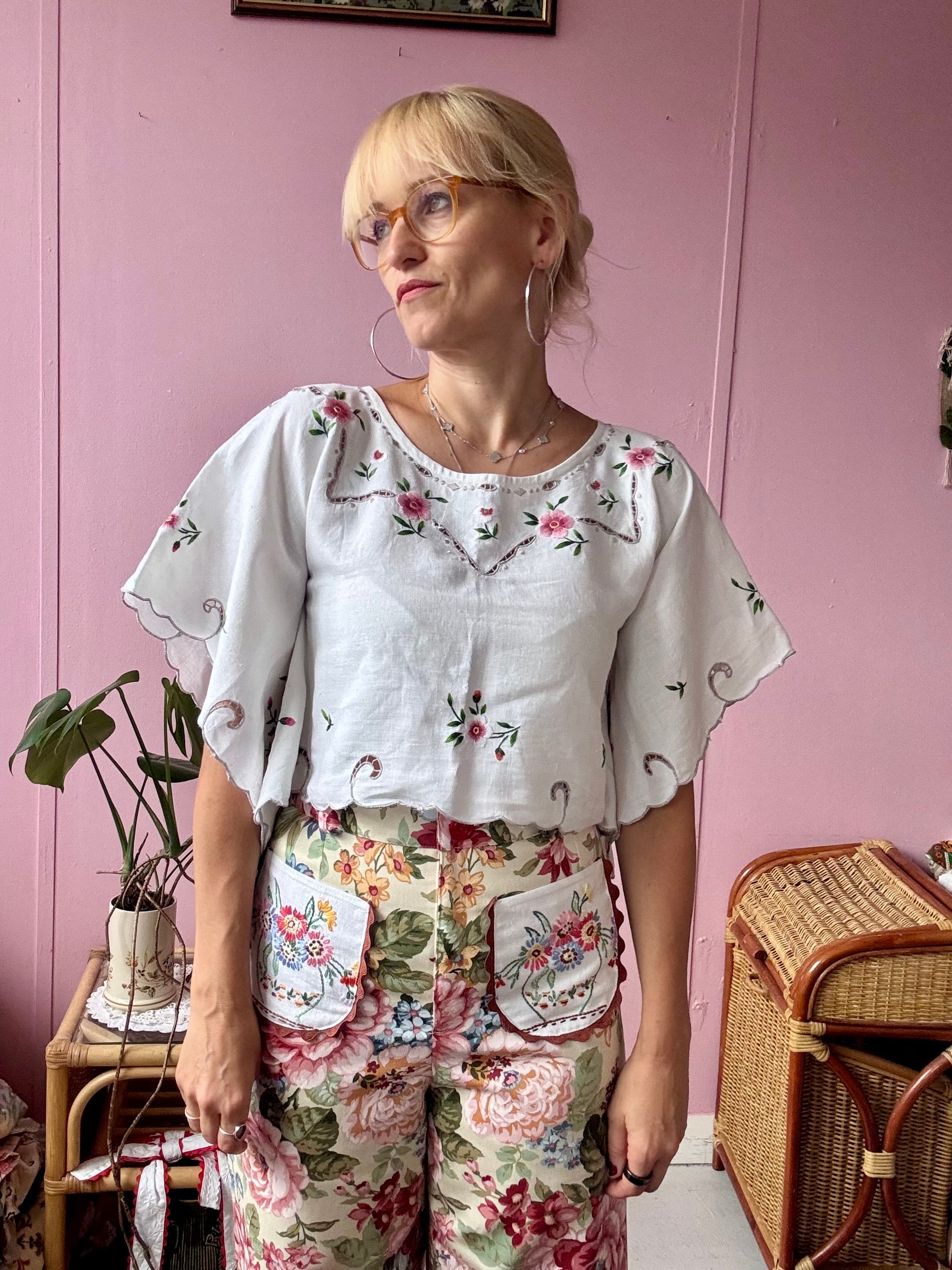 amazing floral hand embroidery details and grey cut out embroidery parts