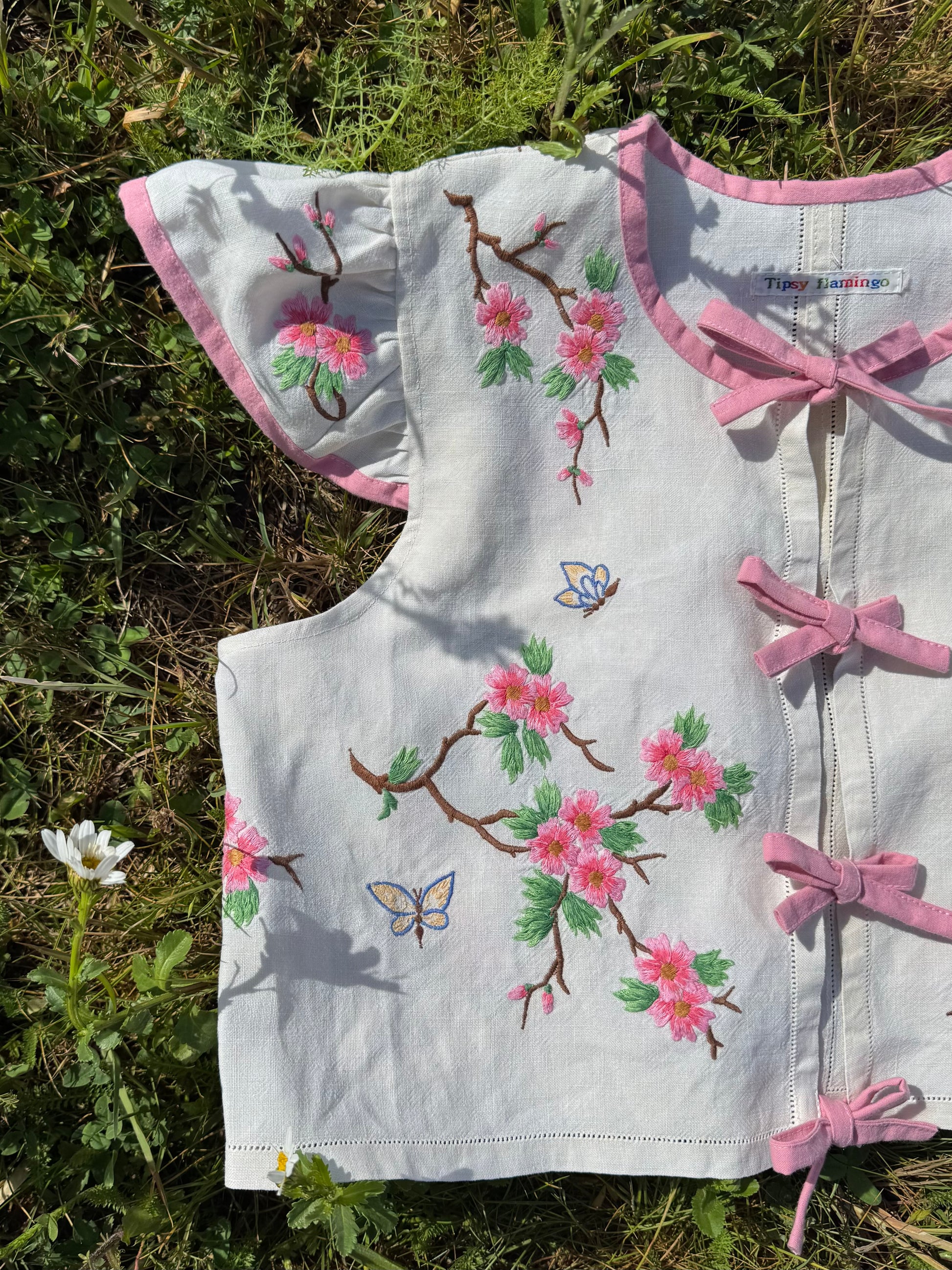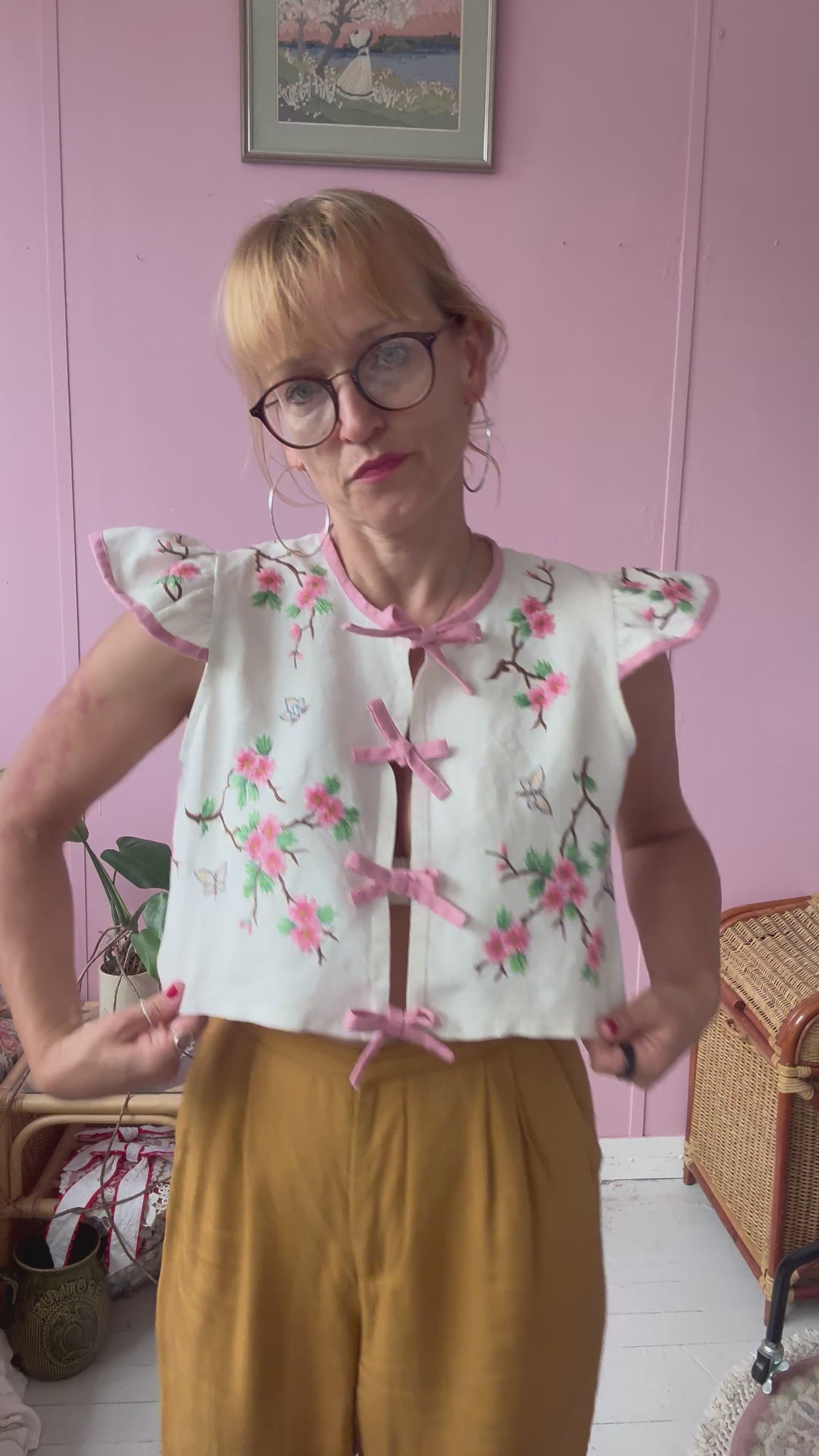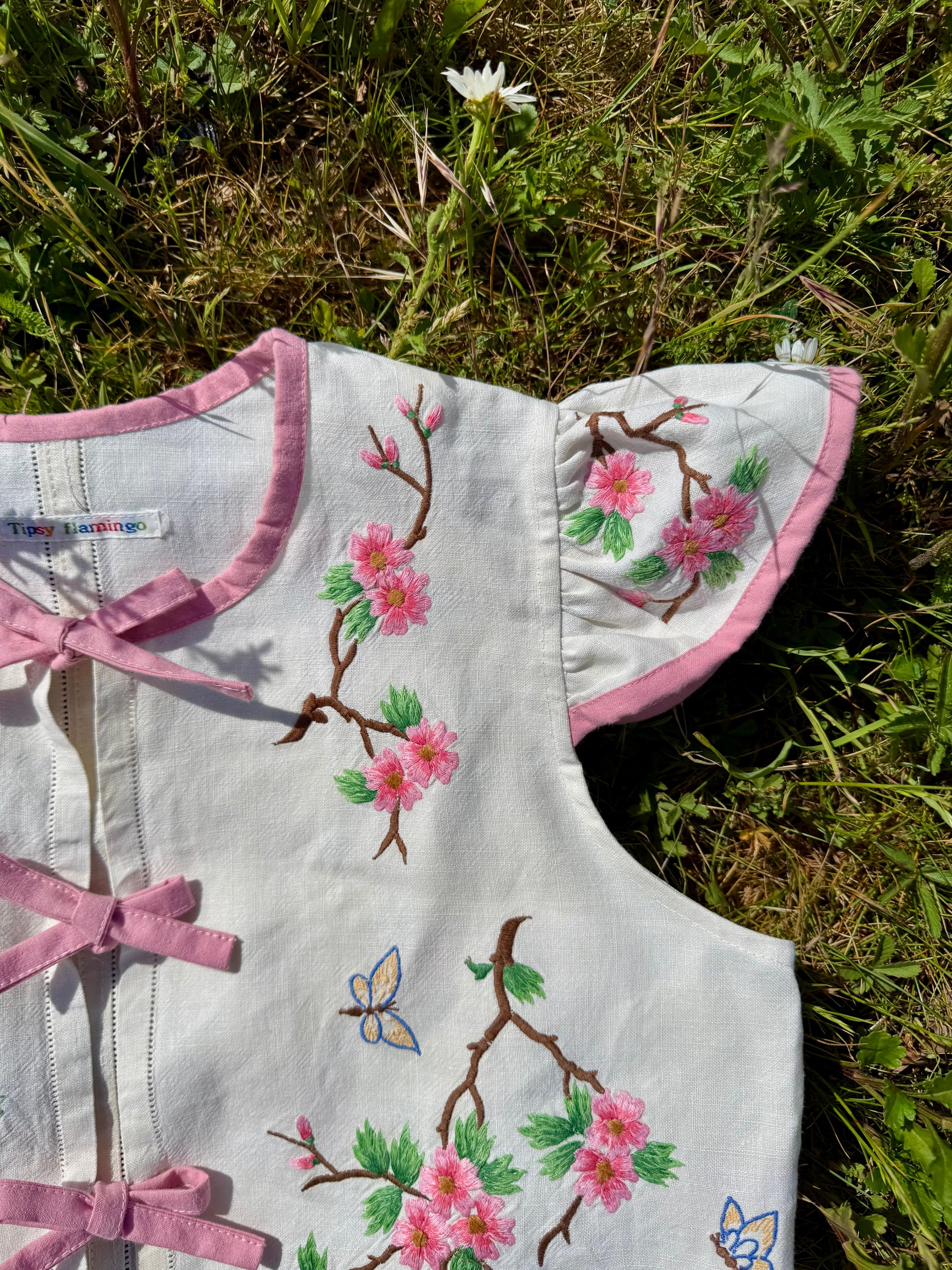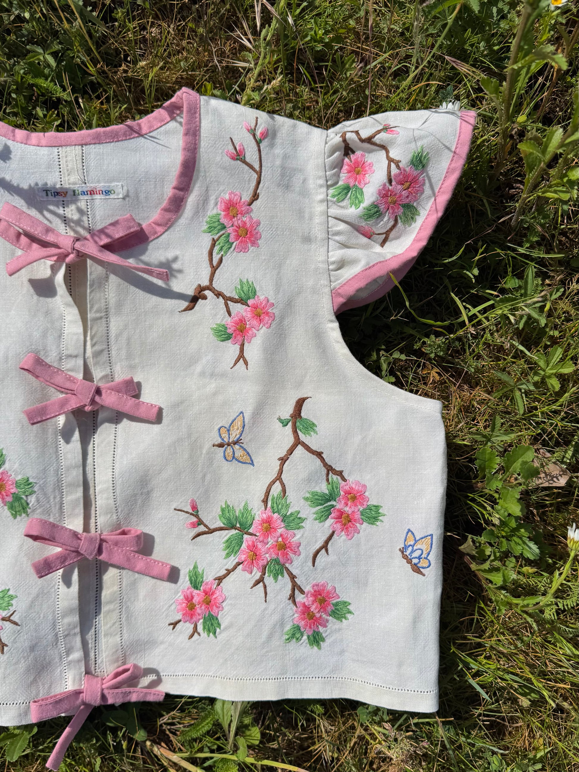 Floral blouse with pink binding and bows