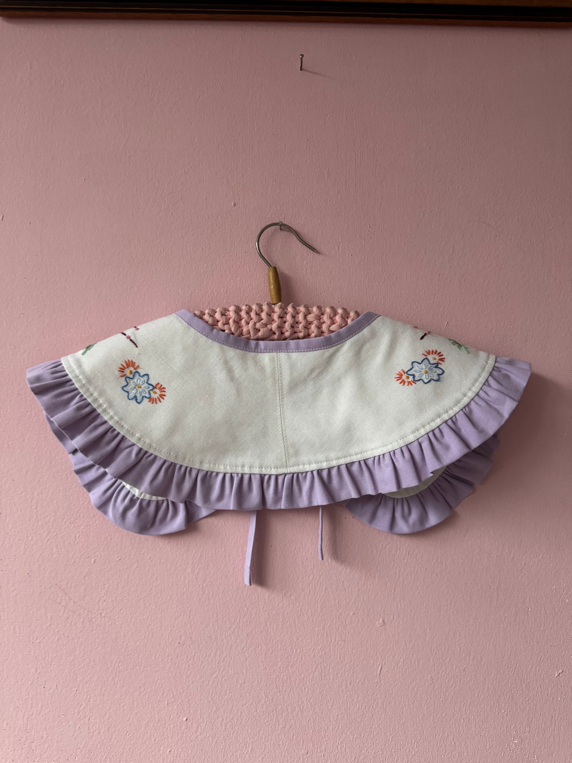 Hand embroidery floral collar made from vintage tablecloth