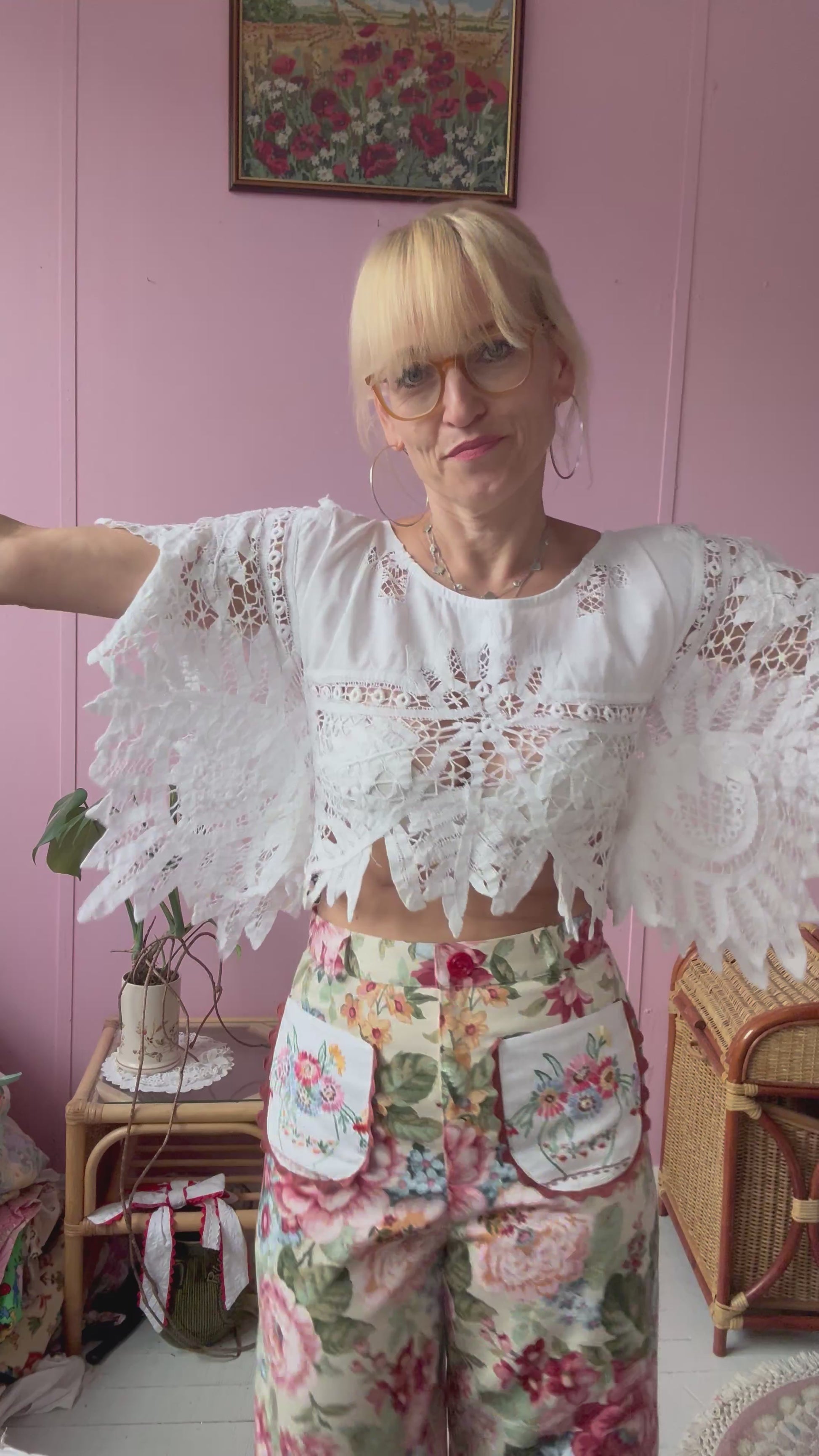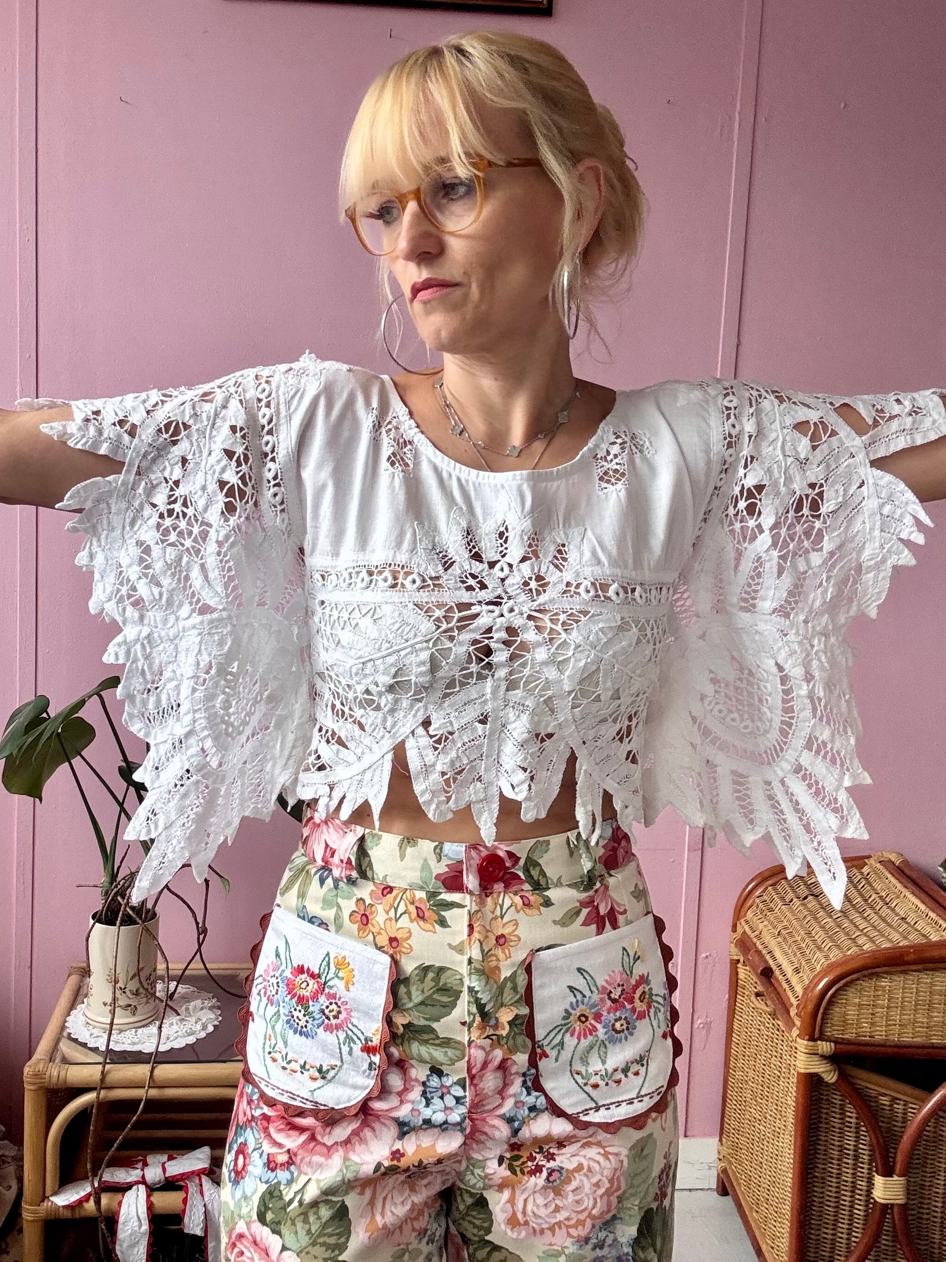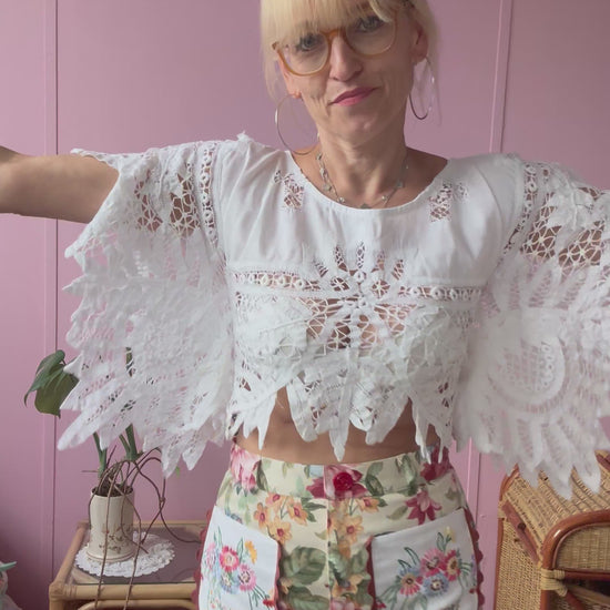 Cute little basic top made from vintage tablecloth