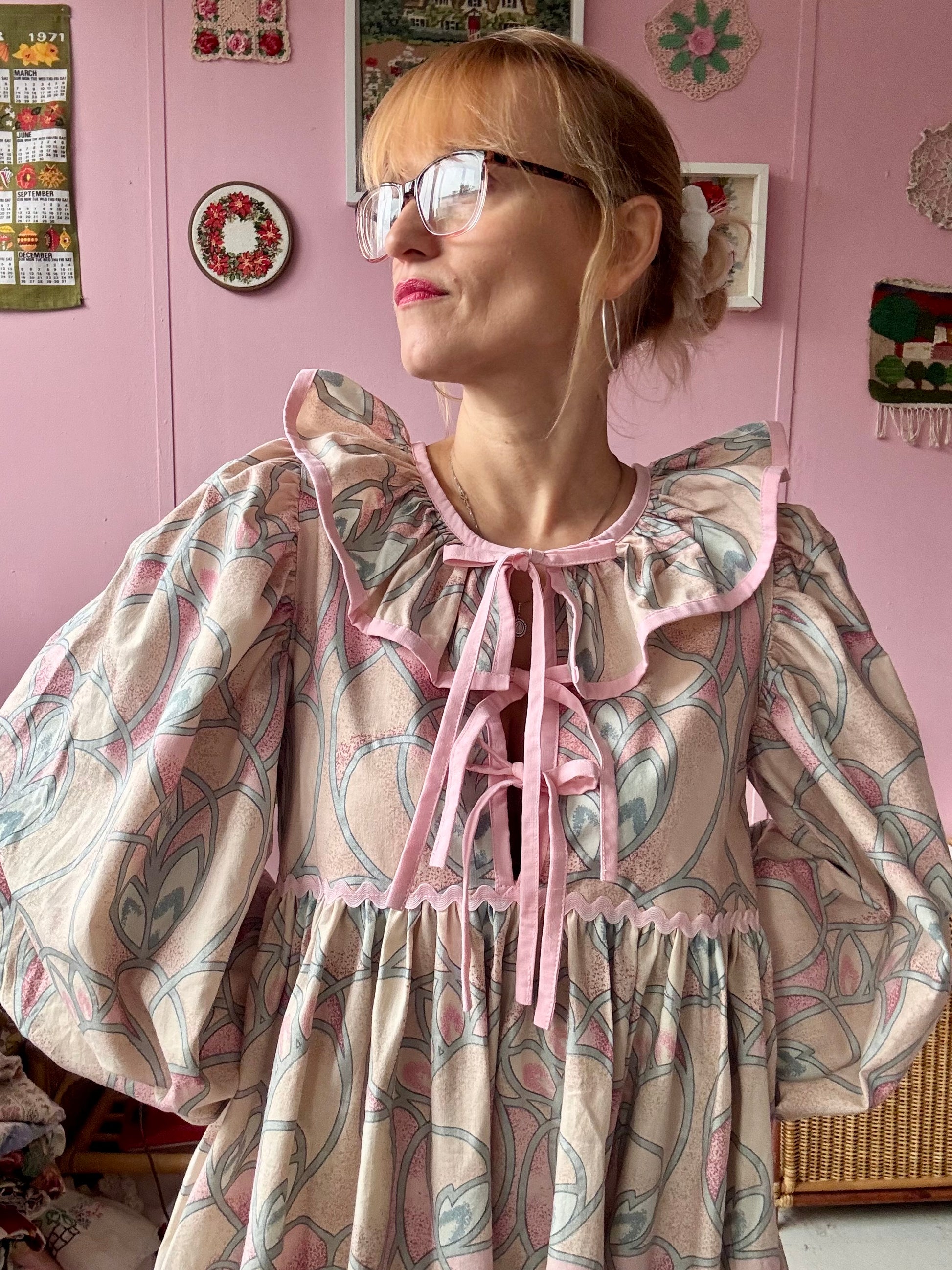 pink binding around frilly collar