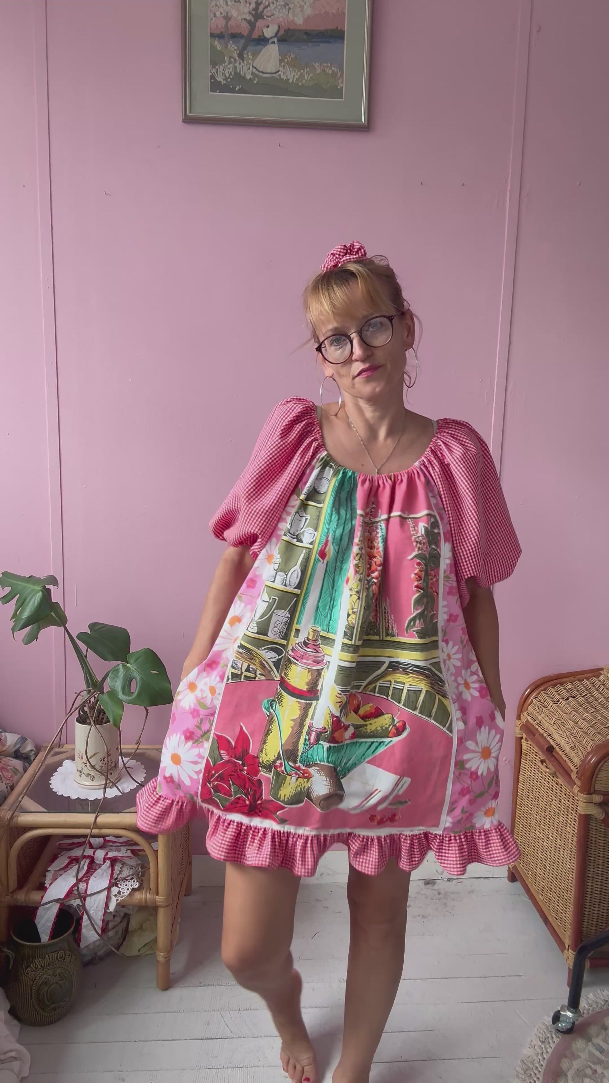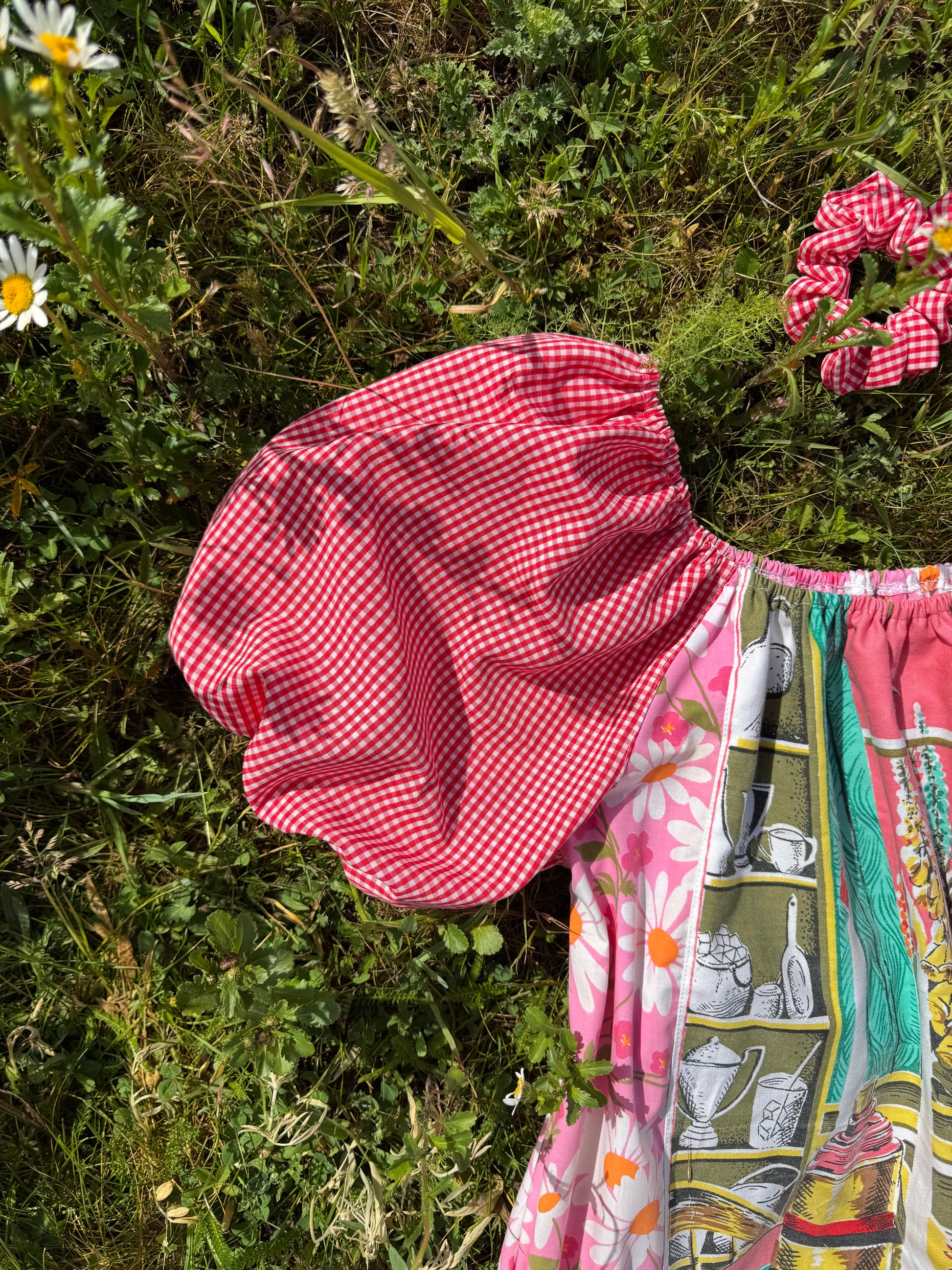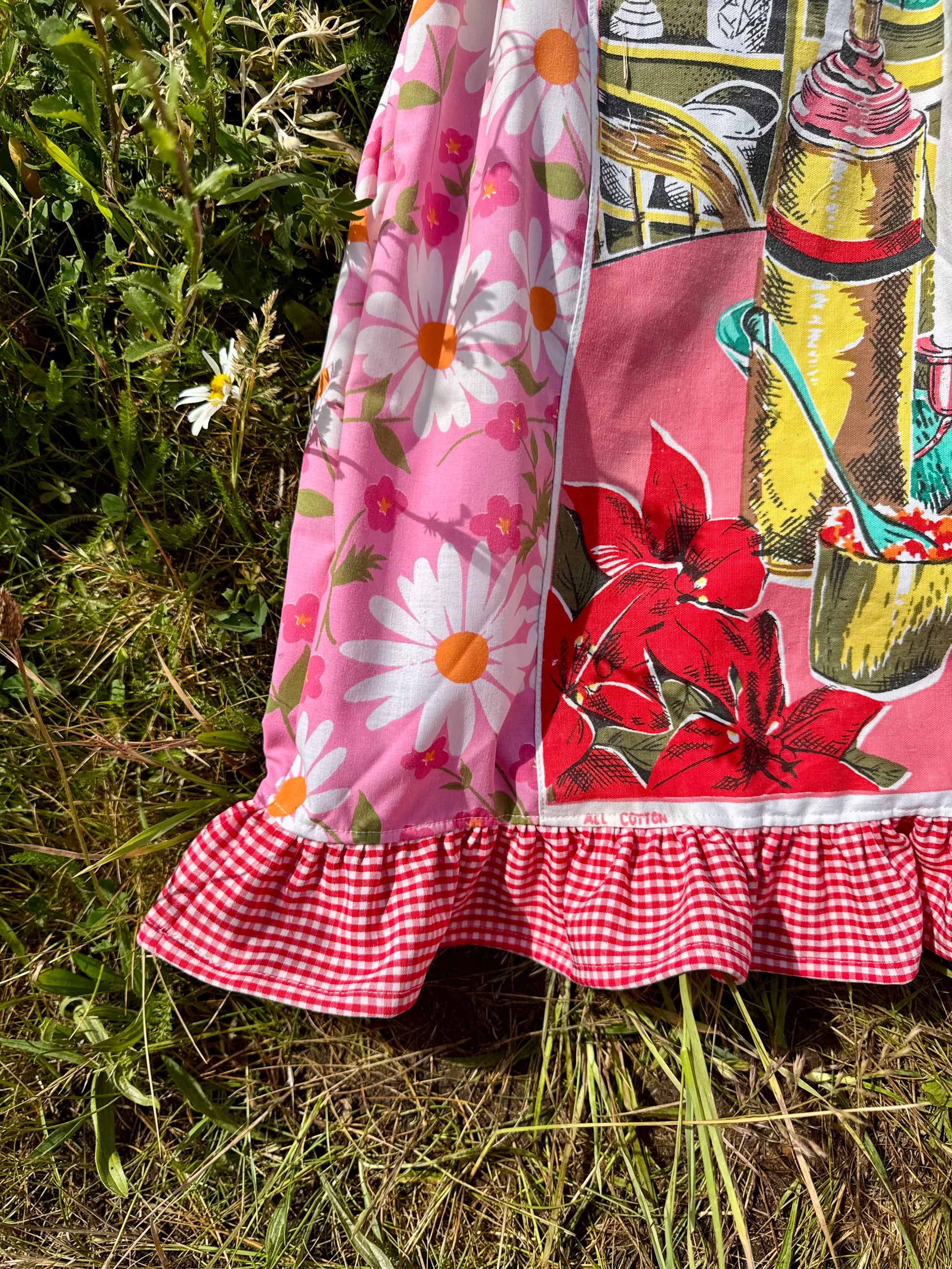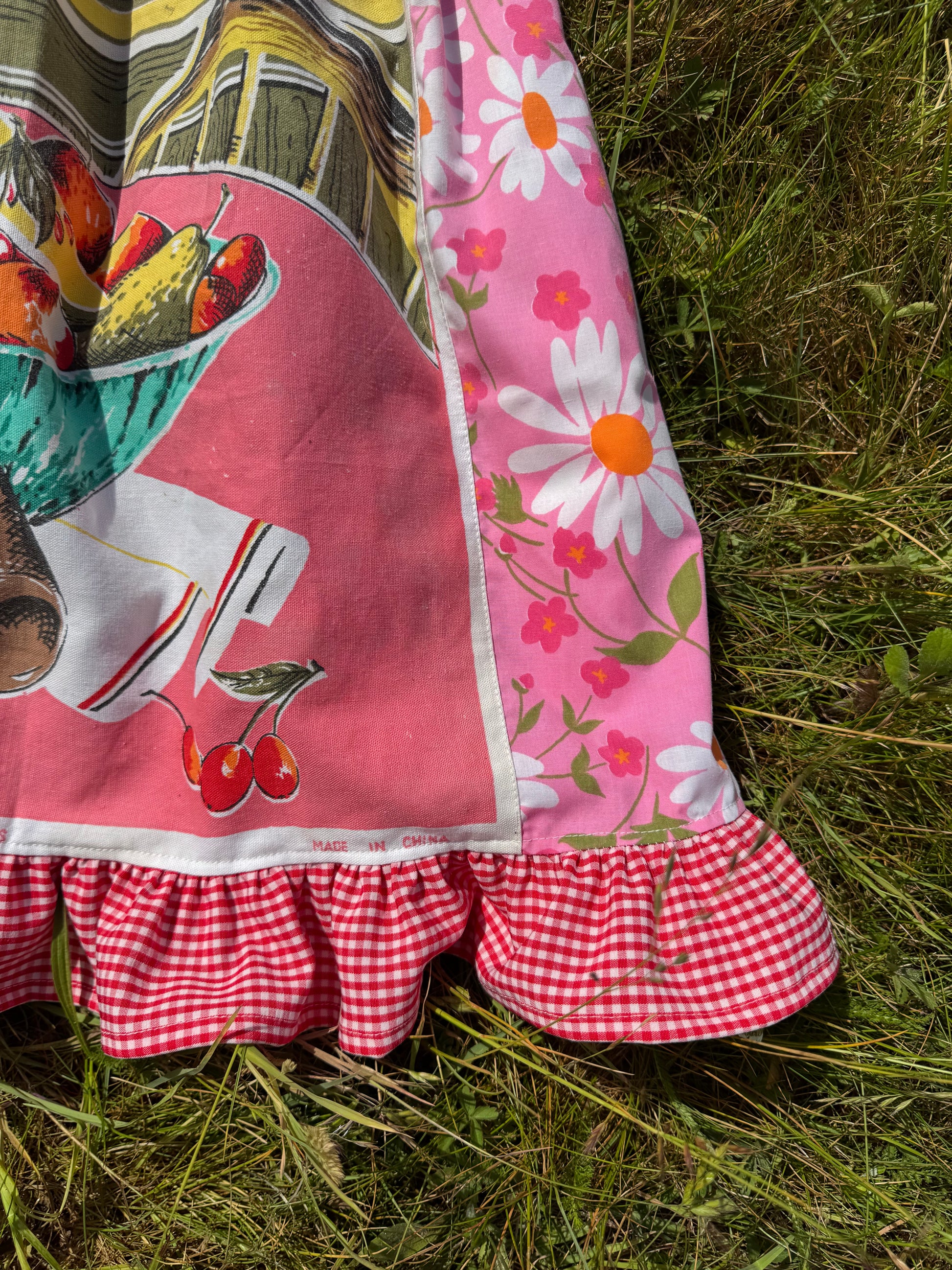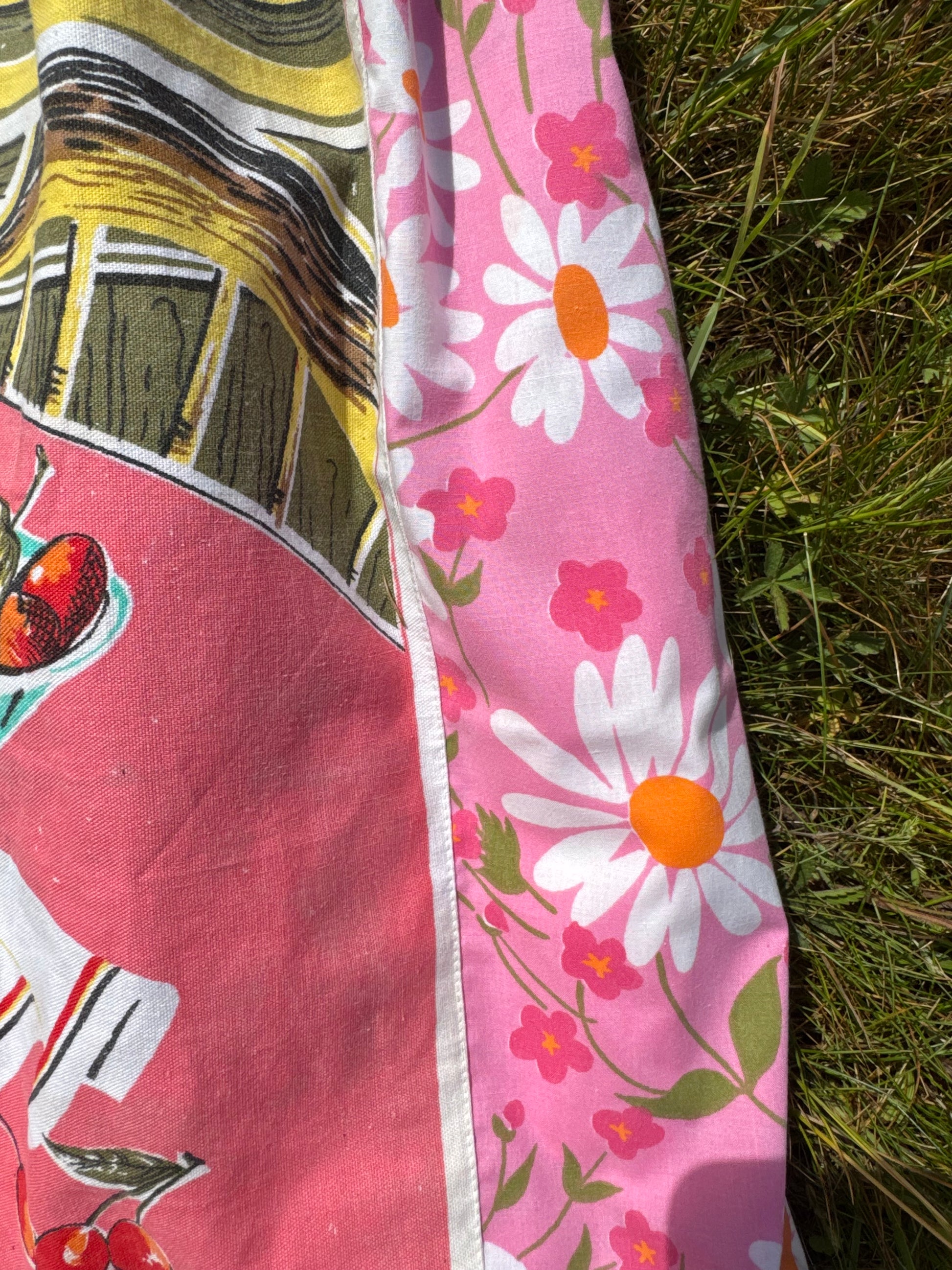 Teatowel and floral dress made from vintage teatowel and vintage bedheet