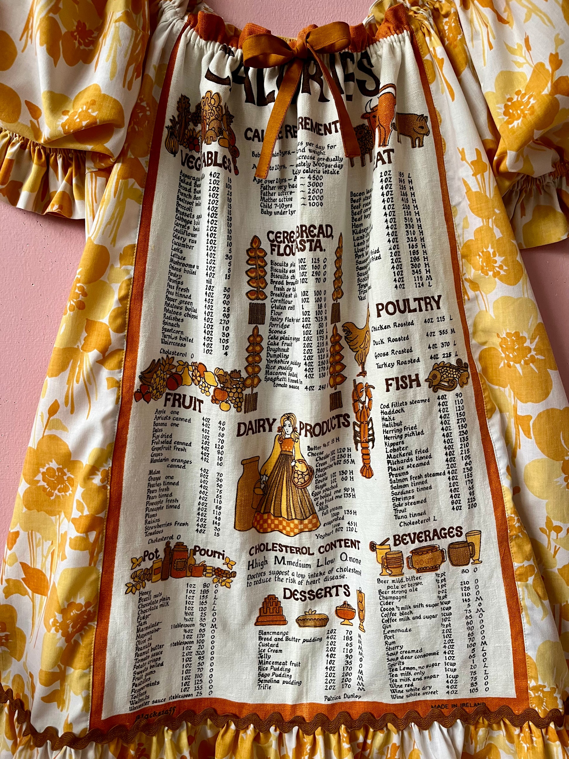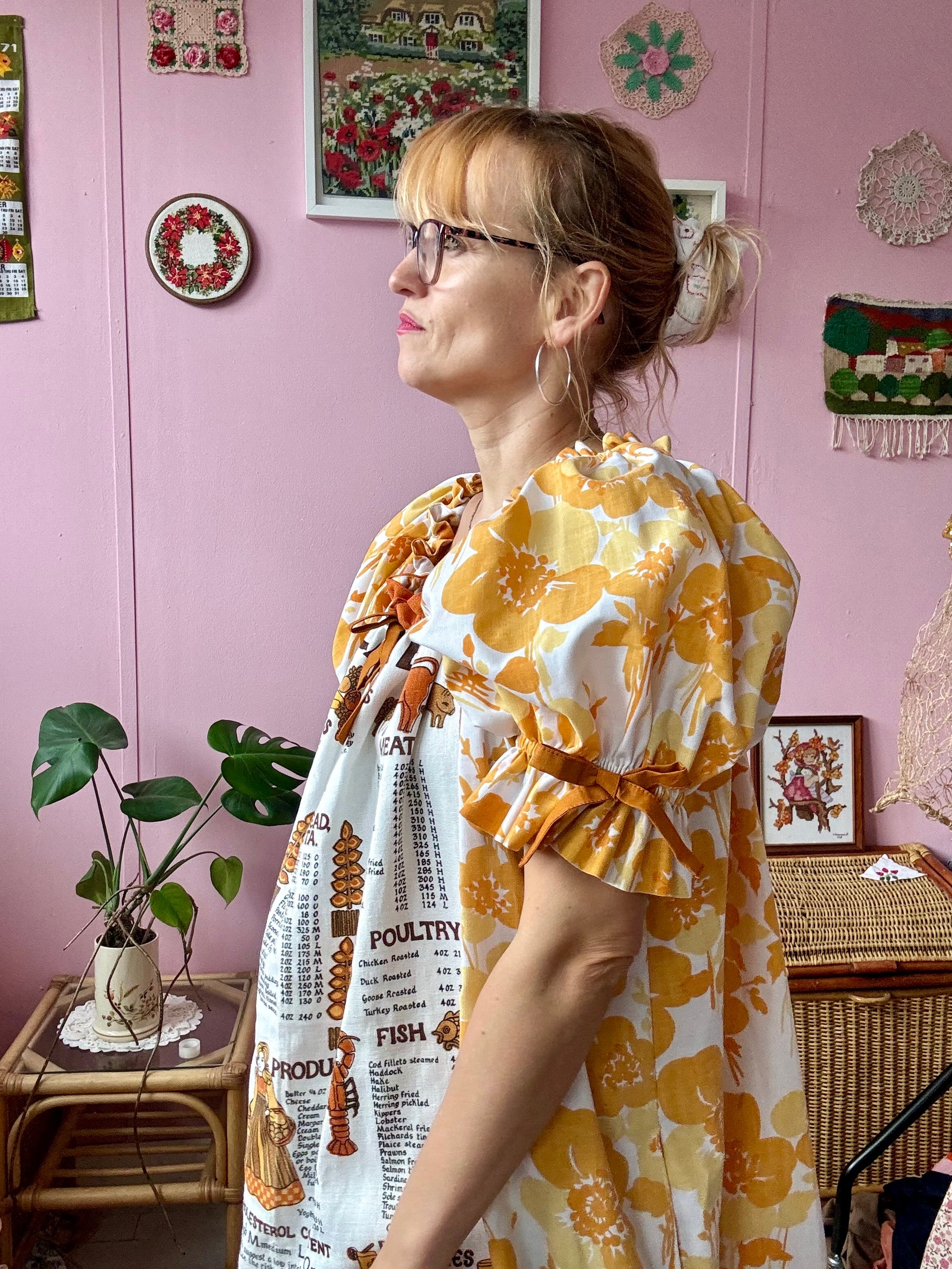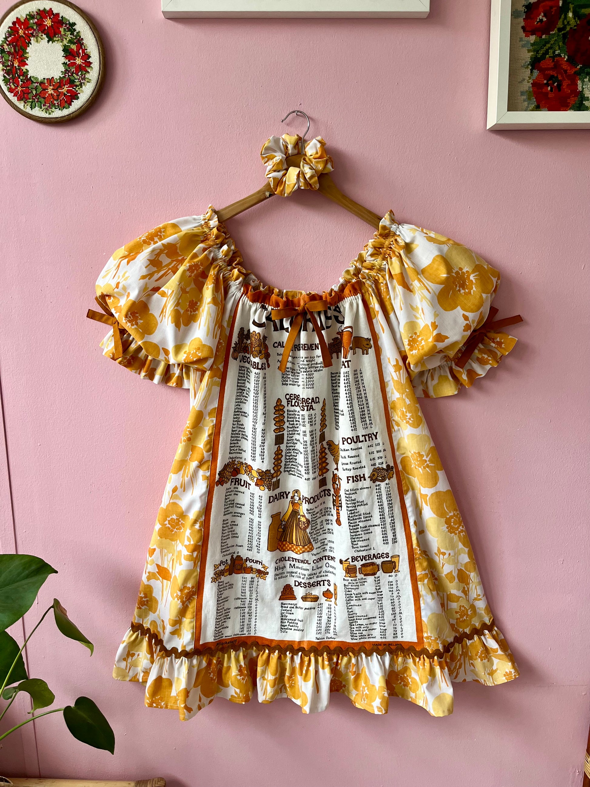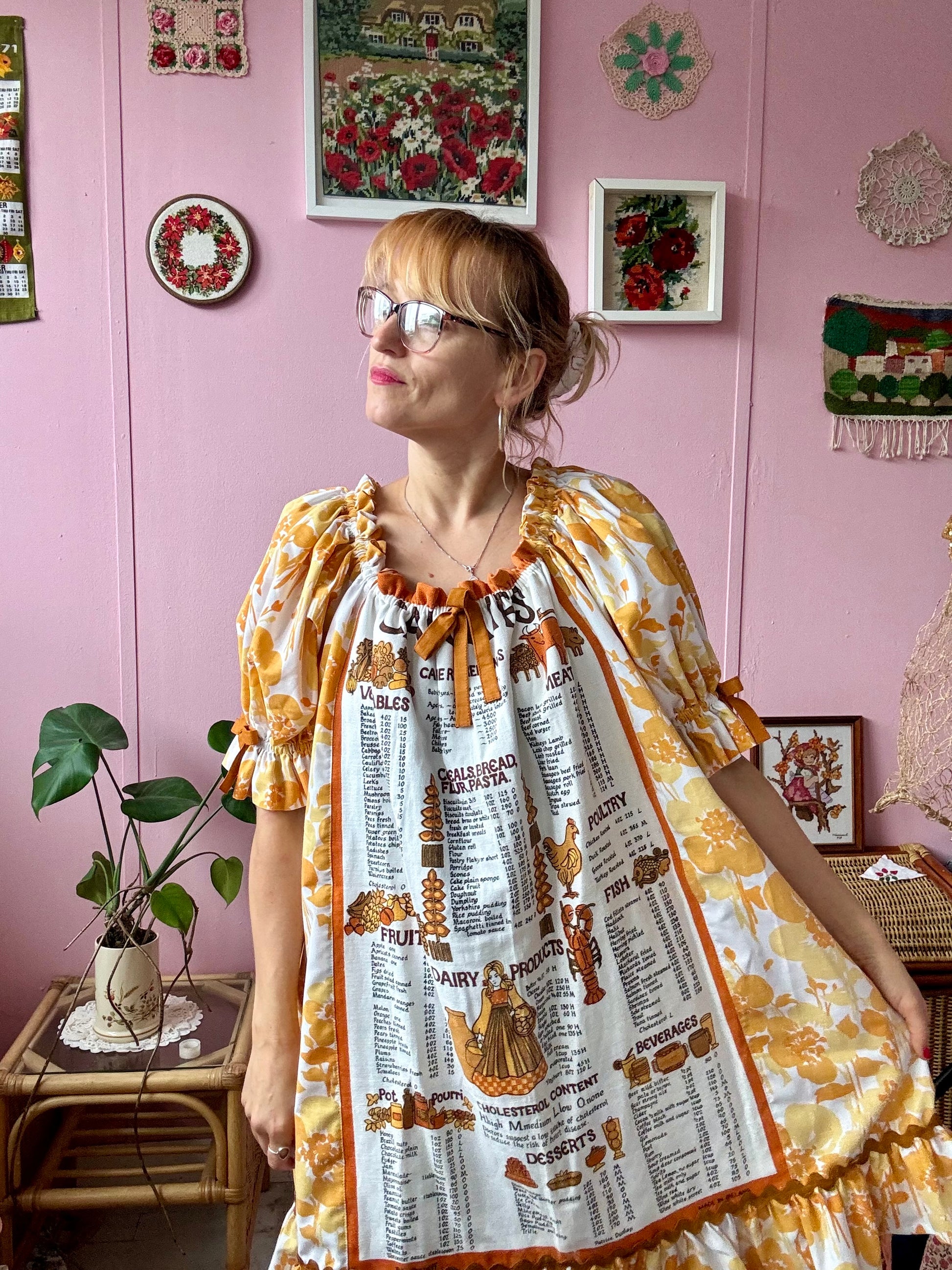 Teatowel and floral dress made from vintage teatowel and vintage bedheet